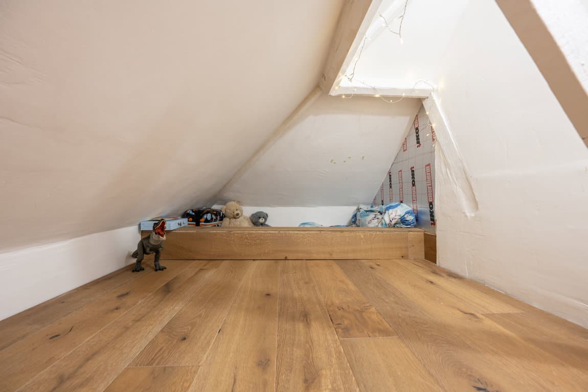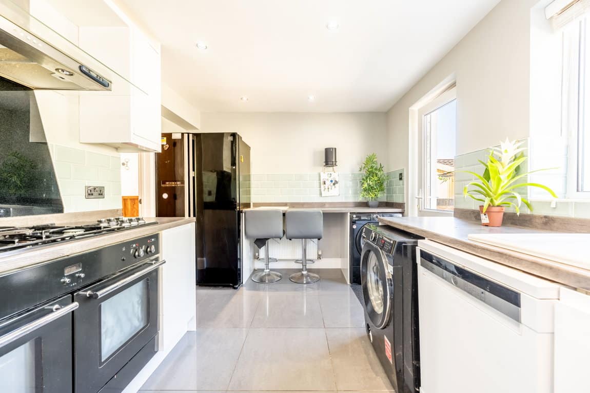 Upon entering, you are welcomed by a spacious entrance hallway which immediately creates a wonderful first impression of the space and standard on offer. Positioned to both the left and right are two impressive double bedrooms, with the bigger room enhanced by an attractive bay window that add's charm and character while allowing an abundance of natural light to pour in. The larger of the two rooms also benefits from built-in storage, thoughtfully designed to maximise practicality without compromising on style. To the first floor are two further generously sized bedrooms, including the superb principal suite. This inviting retreat enjoys fitted storage and a well-appointed en-suite shower room, finished in keeping with the high standards seen throughout the property. A cleverly designed eaves area has also been transformed into a quirky and useful additional space, ideal as a children's den, reading nook or extra storage. Back on the ground floor, the home continues to impress with a larger-than-average family bathroom, beautifully presented and perfectly suited to busy family life. The heart of the home is the stunning open-plan living/dining room, a bright, spacious and incredibly welcoming area designed with modern living in mind. Finished with quality tiled flooring throughout and flooded with natural light, this superb room provides the ideal setting for both everyday family time and entertaining guests, with sliding doors opening directly onto the garden. Leading from the living area is a smart contemporary kitchen, stylishly fitted with a range of modern units and offering further direct access to the garden, creating an effortless indoor-outdoor flow. Further benefits include double glazing throughout, gas central heating, secure gated parking and mature planted borders that enhance both privacy and the established feel of the grounds.