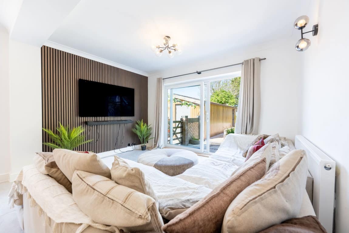 • Stunning open-plan living/dining room with sliding doors opening onto the garden