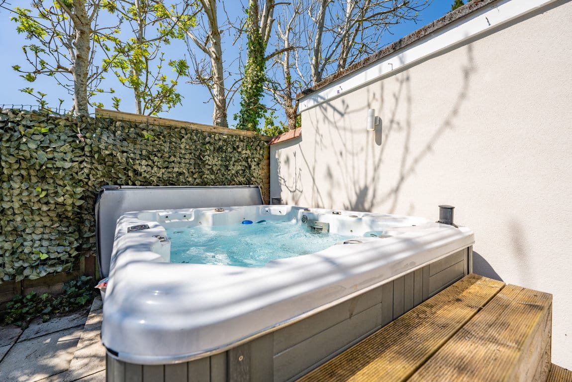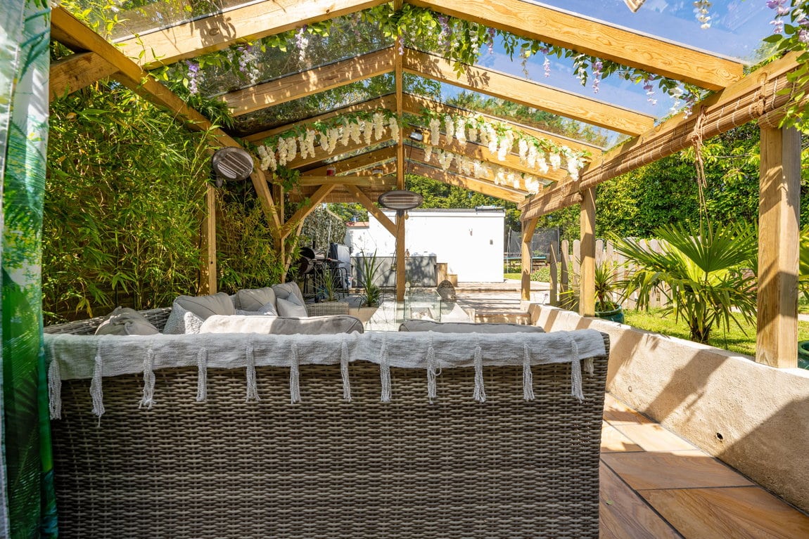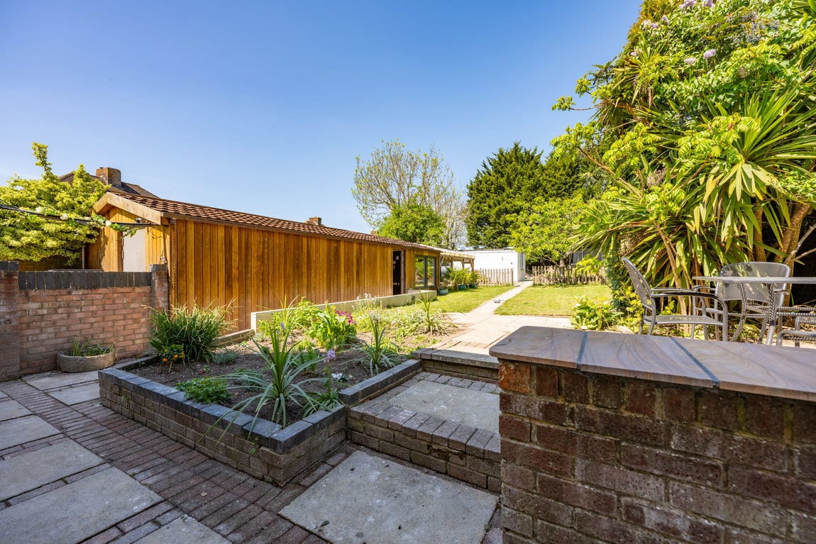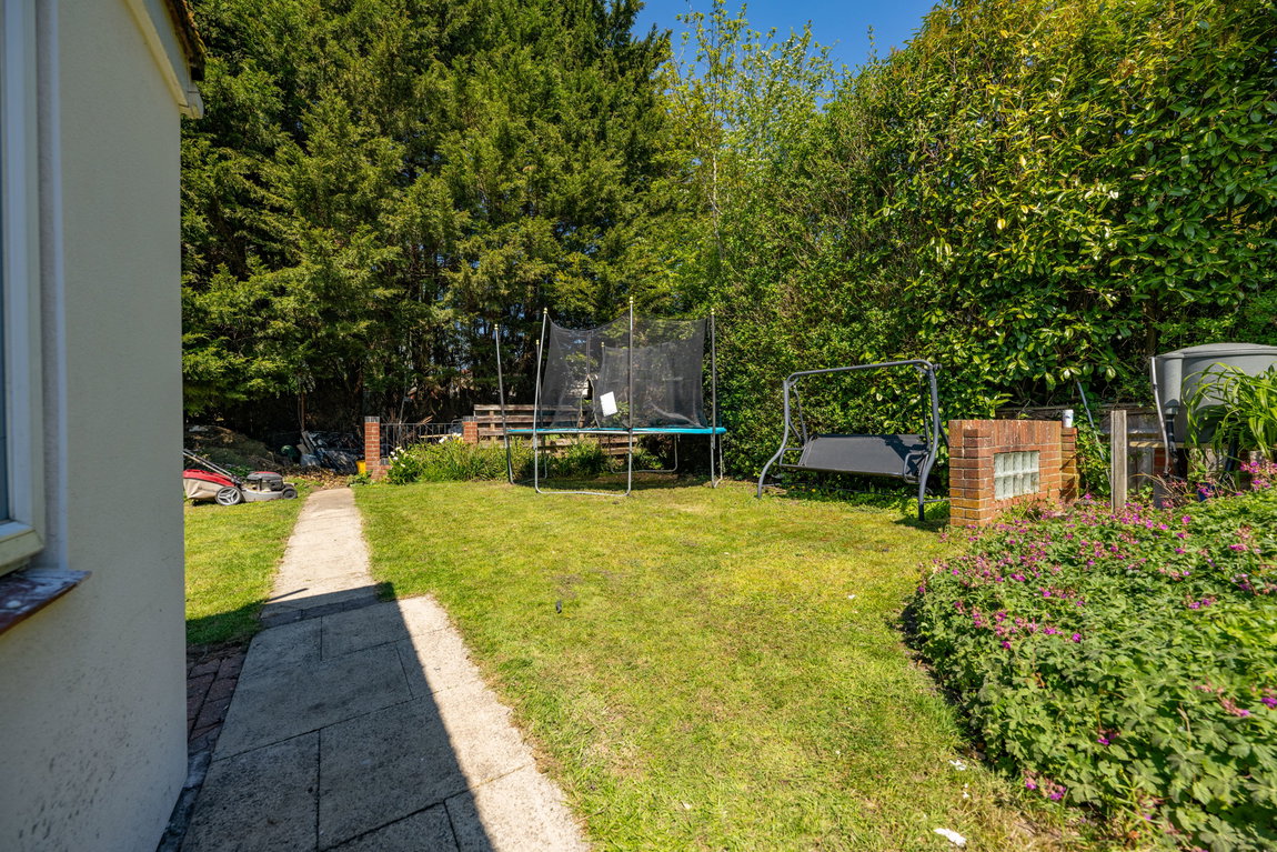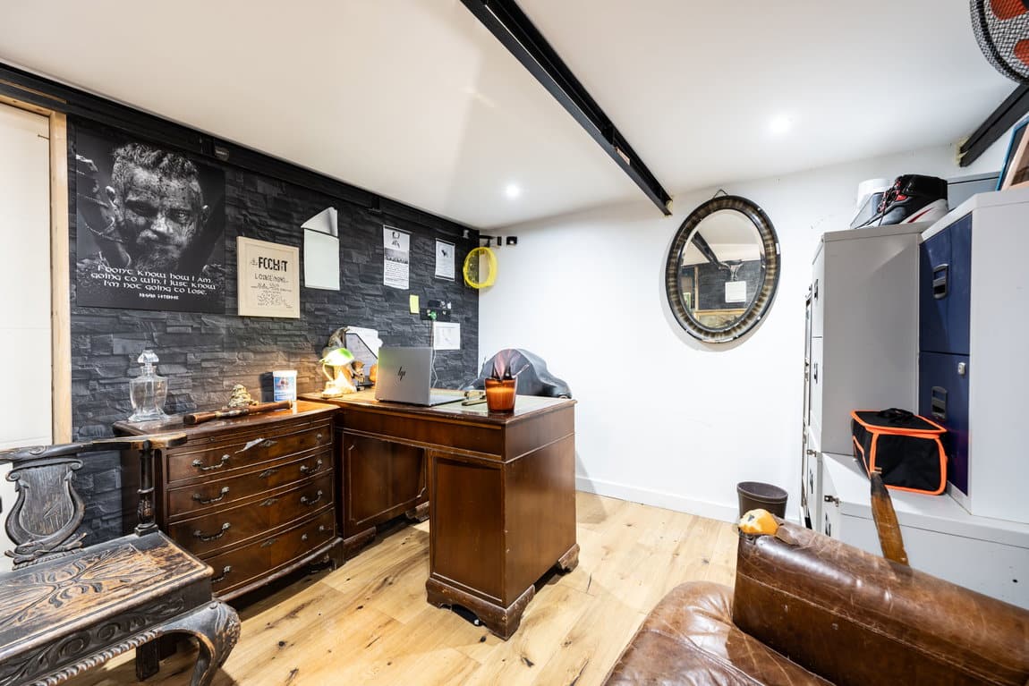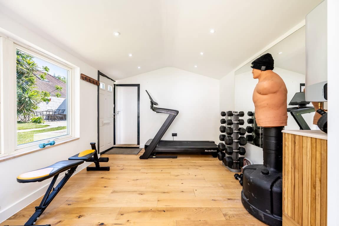 The rear garden is undoubtedly one of the property's most impressive features, extending to approximately 200ft x 40ft and offering exceptional privacy, space and versatility rarely found. Thoughtfully arranged into multiple sections, the garden provides something for everyone, whether relaxing, entertaining or enjoying family activities. A recently added outbuilding offers an excellent combination of home office and gym space, perfect for modern lifestyles. The gym opens via French doors onto a private patio area with a covered veranda, complete outside shower and pull-down blinds to create an intimate and sheltered entertaining area for use all year round. Adjacent to this is a further patio, currently home to a hot tub and perfectly suited for barbecues and social gatherings. To one side sits a stunning feature pond stocked with koi carp, creating a tranquil focal point within the garden. Further beyond is an additional garden room, currently used as a bedroom, followed by yet more private garden space, adding to the sense of scale and opportunity this outstanding plot provides.
