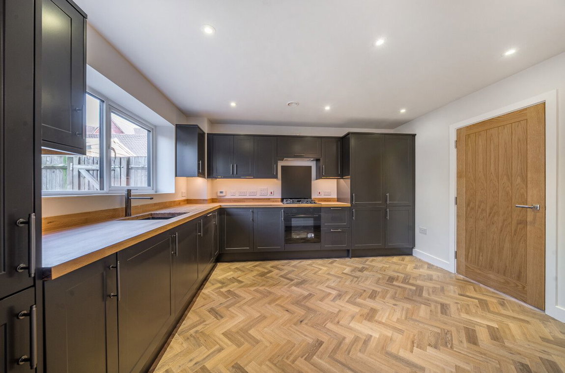 At the rear of the property is a modern and newly fitted kitchen, designed with both style and practicality in mind. It offers generous worktop space and ample storage, making it well suited to everyday use as well as entertaining. It also includes an integrated fridge freezer, washing machine and dishwasher, all built in for ease of use and finished with a sleek, polished look.