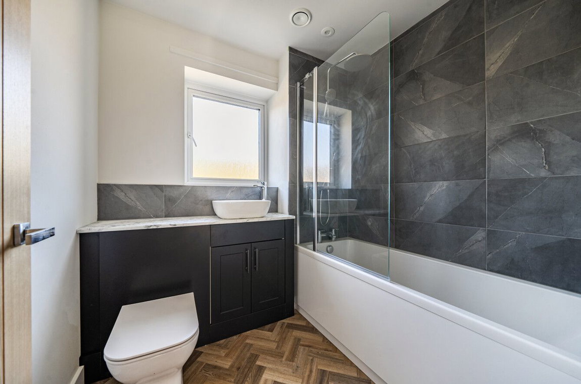Upstairs, the home continues to impress with three well-proportioned bedrooms, offering comfortable and versatile space for families, guests or home working. The principal bedroom benefits from built-in storage, while the remaining bedrooms are also well-proportioned and finished to a good standard. The accommodation is completed by a modern family bathroom, finished in keeping with the quality of the renovation.