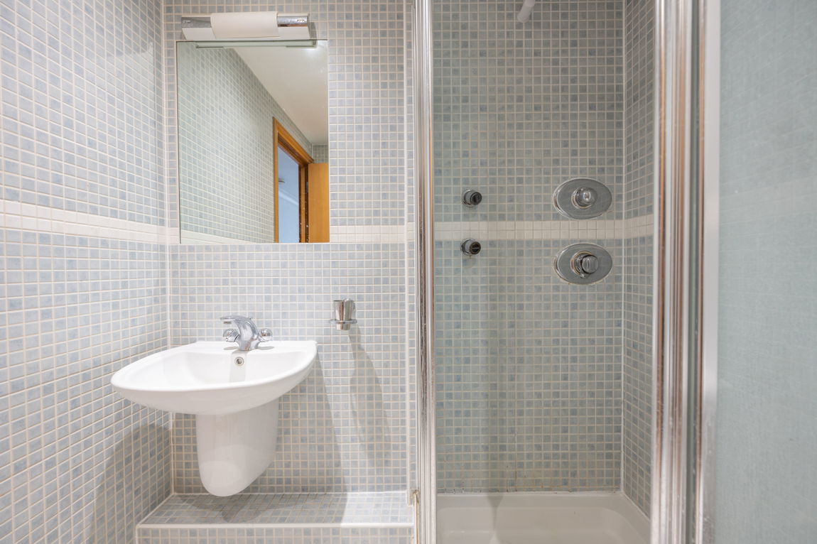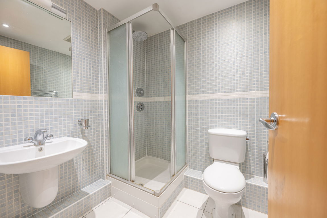 The master bedroom benefits from balcony access, fitted wardrobes and a stylish ensuite shower room, finished with mosaic tiling. The second bedroom is also a comfortable double with built-in storage, making it ideal for guests, a home office or sharers. Completing the accommodation is a modern three-piece bathroom suite. Externally, the property includes a secure allocated parking space.