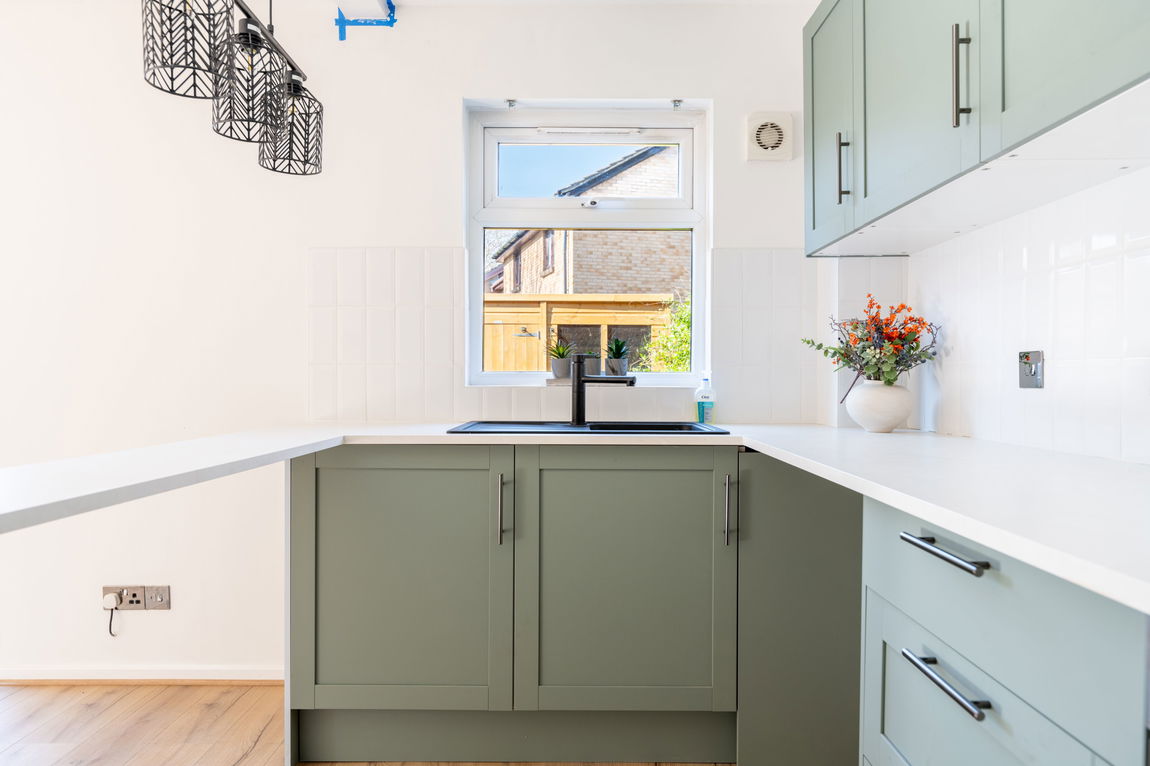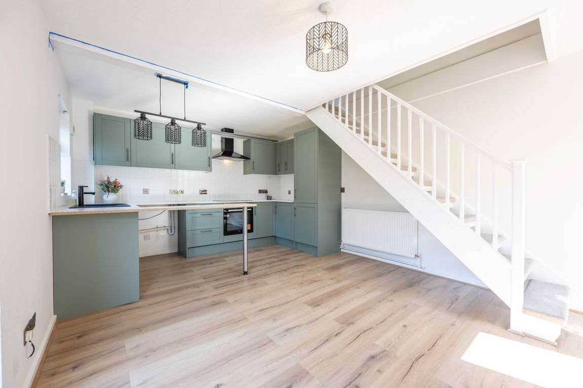 The ground floor has now been thoughtfully reconfigured to create a modern open-plan living and kitchen space, significantly enhancing both flow and functionality. The newly refitted kitchen features a contemporary range of base and wall units, complete with an integrated fridge and freezer, oven, hob and extractor over. This space is both stylish and practical, ideal for modern living.