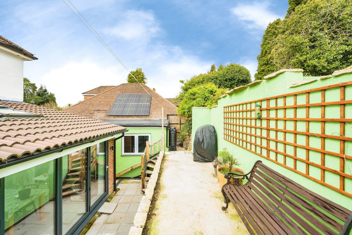 Outside, the tiered garden offers a private and versatile outdoor environment, ideal for both entertaining and relaxation. A distinctive World War II Anderson shelter adds a rare and fascinating architectural feature, lending character and individuality to the property. A detached garage and spacious driveway complete the offering, providing ample off-road parking.
