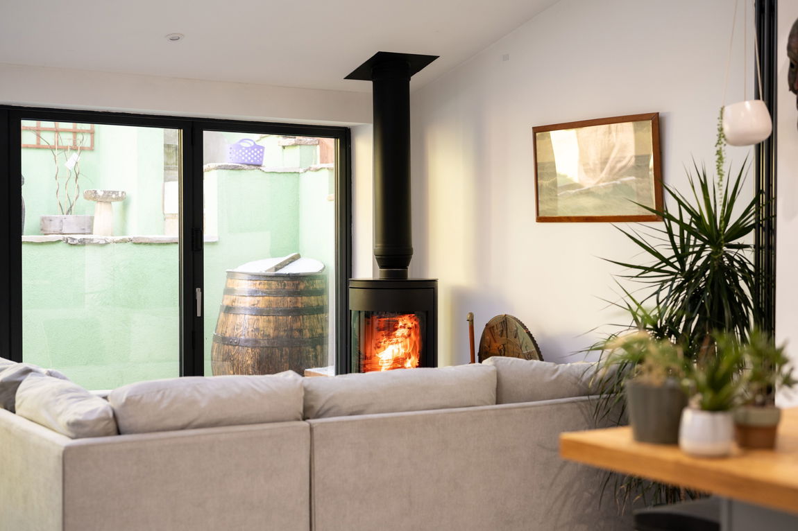 To the rear, the home truly comes into its own with an exceptional open-plan kitchen, dining and living space, thoughtfully designed for modern living and entertaining. A striking central island forms the focal point, complemented by premium integrated appliances and expansive bi-fold doors that open seamlessly onto the garden. A standalone wood burner adds warmth and character, creating an inviting atmosphere year round. A stylish ground-floor shower room, positioned just off the kitchen, enhances the practicality of this impressive layout.