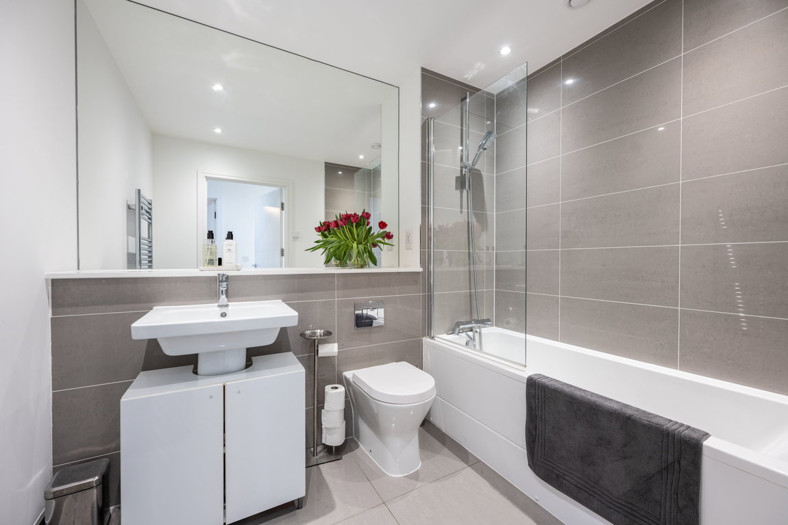 - Sleek contemporary family bathroom