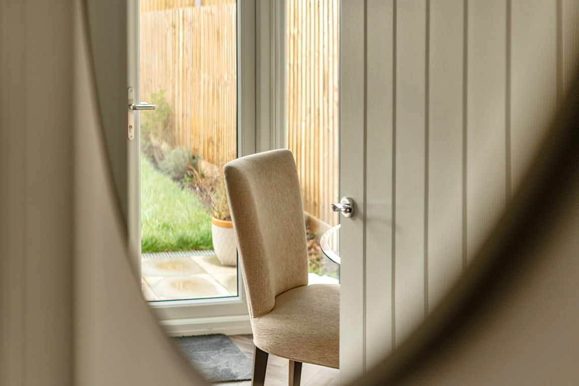 To the rear of the property lies the true heart of the home: an impressive open-plan kitchen and dining area, significantly enhanced by the current owner with approximately £7,500 worth of upgrades. These include elegant marble worktops, shaker-style wall and base units, upgraded handles, and premium integrated appliances. Designed with both everyday living and entertaining in mind, the space easily accommodates a four to six-seater dining table, while French doors open directly onto the southerly facing garden, filling the room with light and creating a wonderful indoor-outdoor connection.