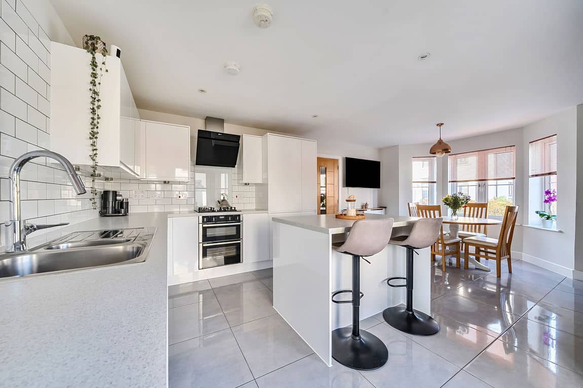 - Spacious Open-Plan Kitchen/Dining Room With Bay Windows, Kitchen Island & A Range Of Integrated Appliances