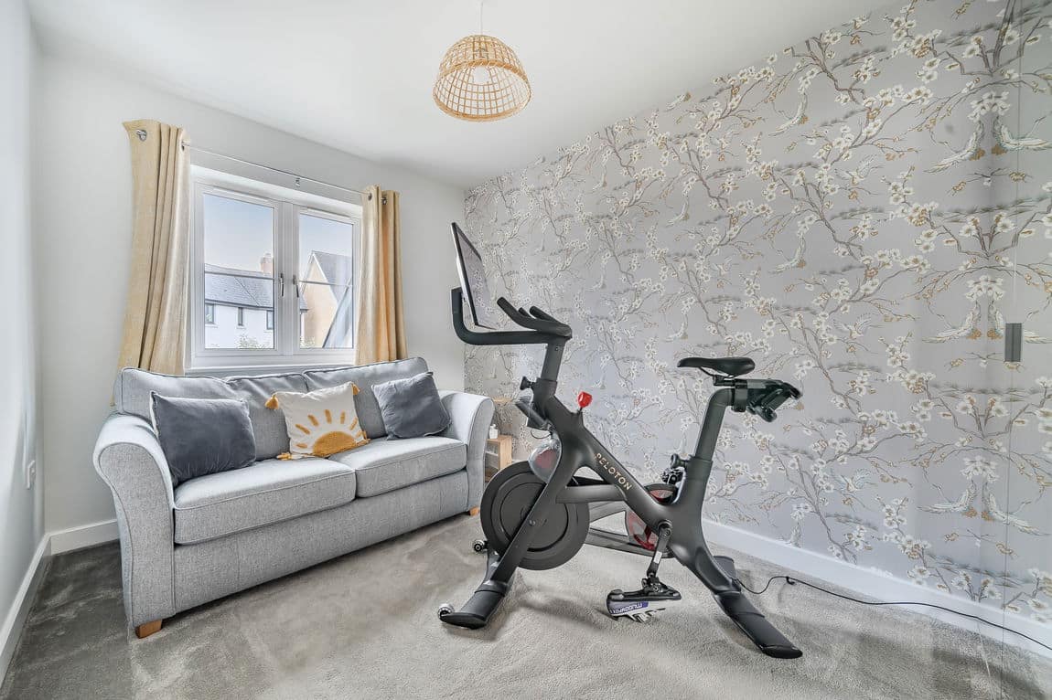 Upstairs, you’ll find four well-proportioned bedrooms and a spacious landing. The main bedroom features a built-in wardrobe and a stylish en-suite shower room with a thermostatic rainfall shower. The second bedroom is another generous double, while the third and fourth bedrooms are evenly sized ideal for children or a home office setup. The family bathroom offers a modern three-piece suite with a wall-mounted sink, panelled bath, and thermostatic shower over.