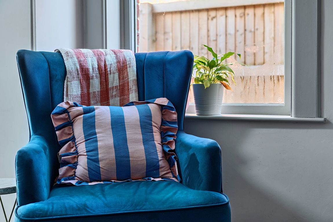 The true wow factor lies to the rear of the property. The extended open-plan kitchen and dining area is a stunning, light-filled space designed for modern living and entertaining. Royal blue shaker-style units are paired with contrasting marble-effect worktops, while integrated appliances include a slimline dishwasher, fridge/freezer, oven and four-ring induction hob. Wooden-effect laminate flooring flows throughout, and bi-folding doors open directly onto the garden, effortlessly connecting indoor and outdoor living. Thanks to the extension, there is ample space for a four-seater dining table, making this room perfect for both everyday family life and hosting guests.