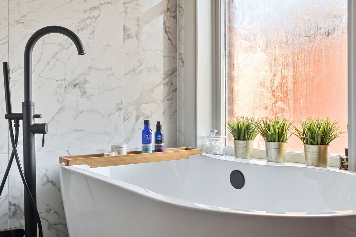 - Luxury Four-Piece Bathroom With Freestanding Bath & Sizeable Walk In Shower With Thermostatic Rainfall Shower Unit