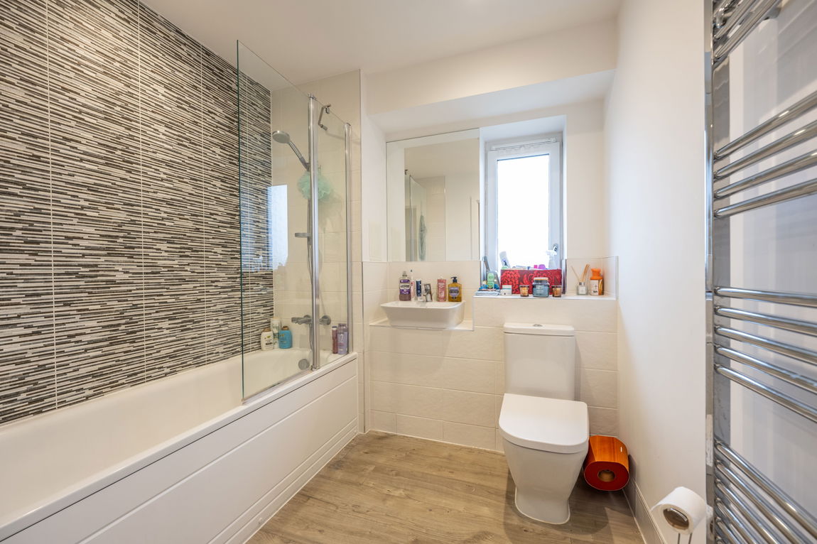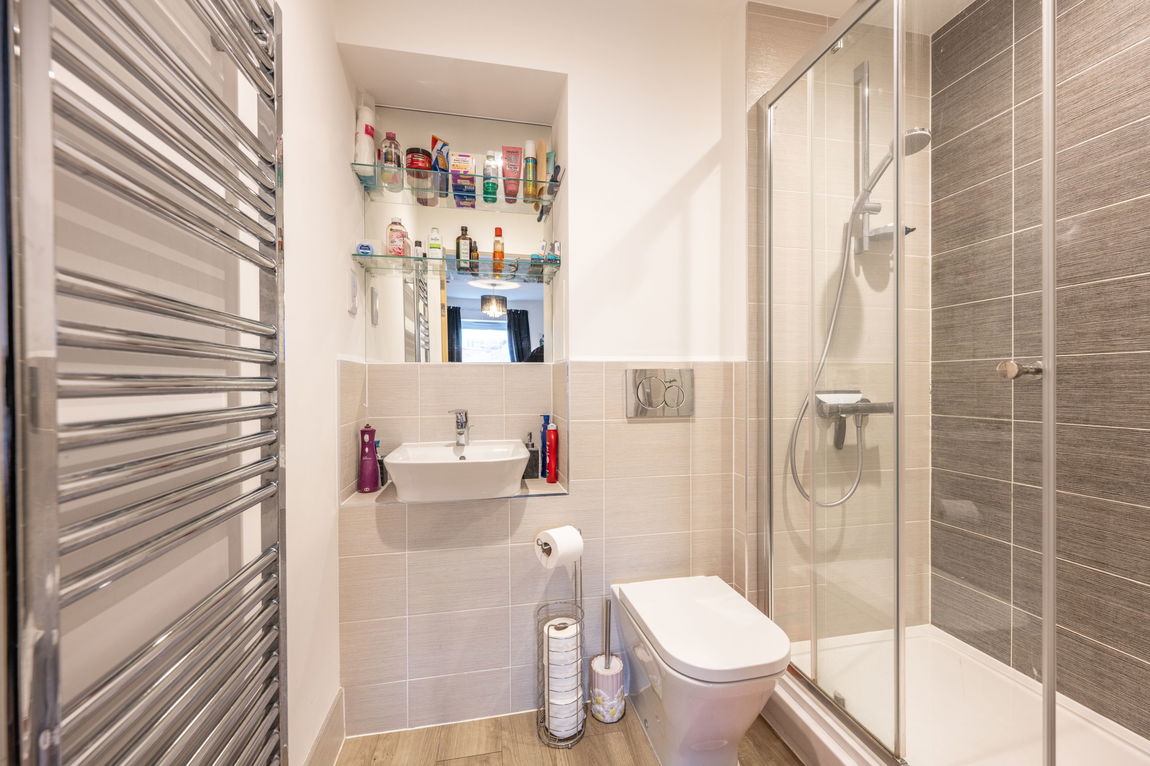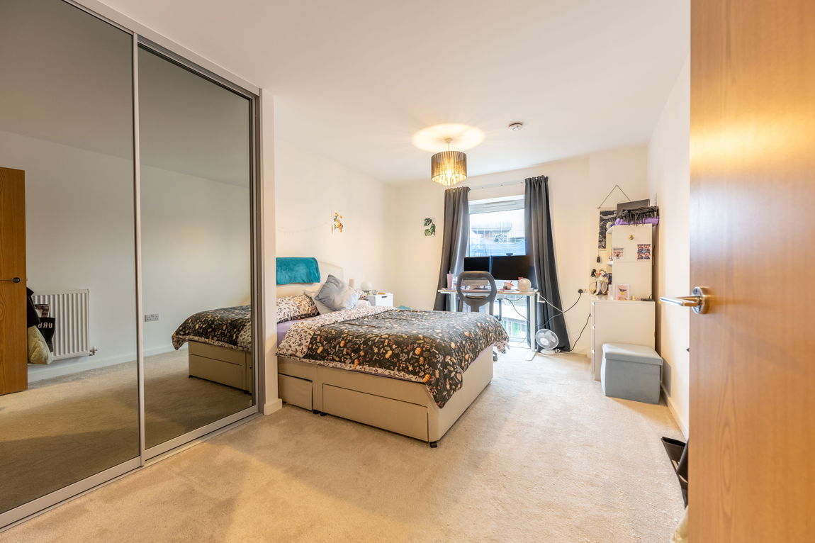Both bedrooms are well-proportioned, with the principal bedroom benefiting from fitted storage and a contemporary en-suite shower room. A well appointed family bathroom serves the second bedroom and guests, completing the internal accommodation.