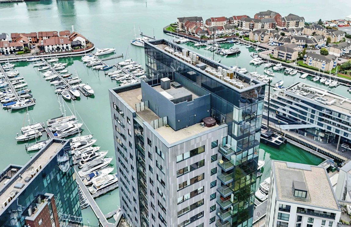 - Private terraces overlooking marina, city and Solent